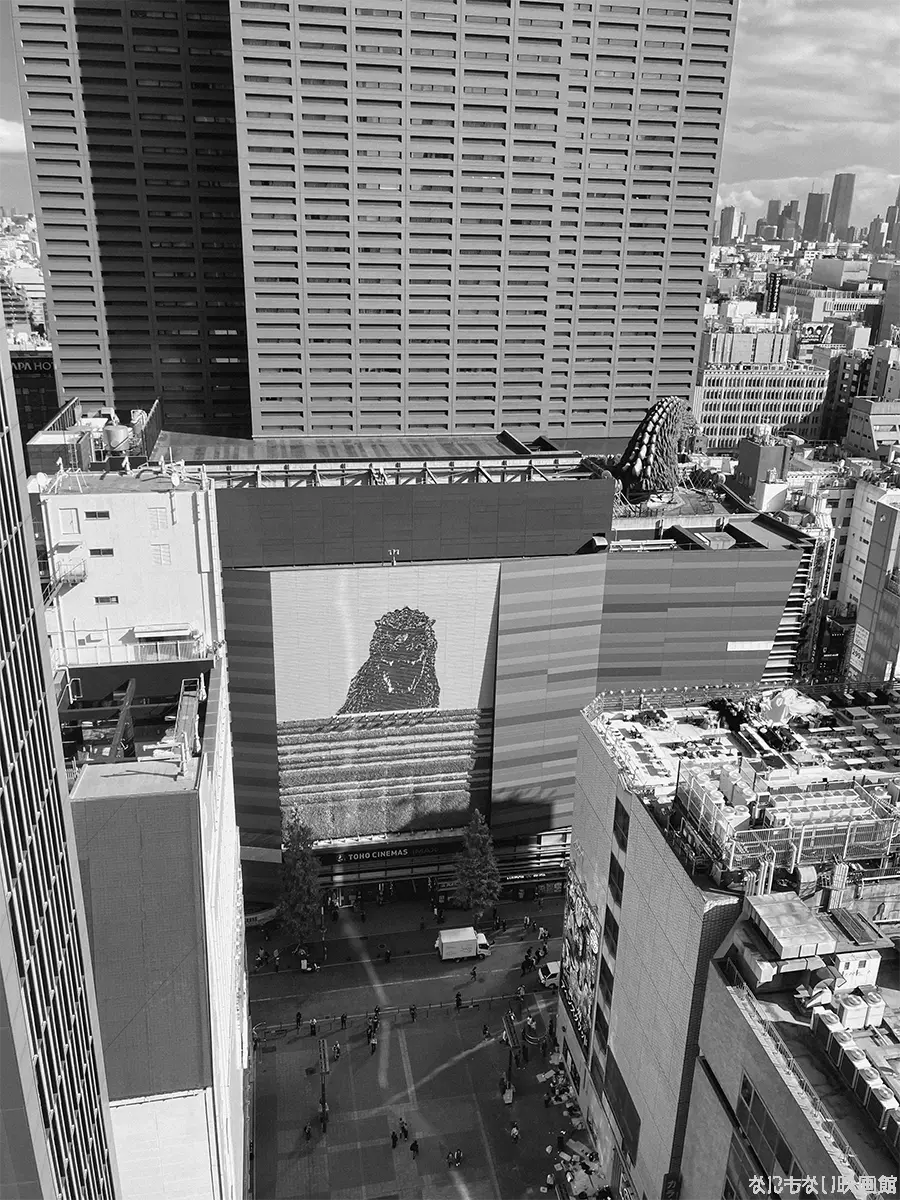 高い映画館なので窓の景色から東宝のゴジラを見下せるように東急が設計しています。